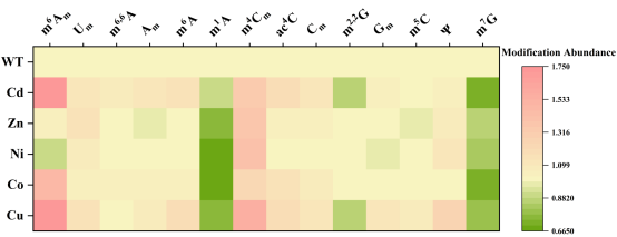 Fig.3不同重金属胁迫下RNA修饰变化
